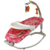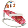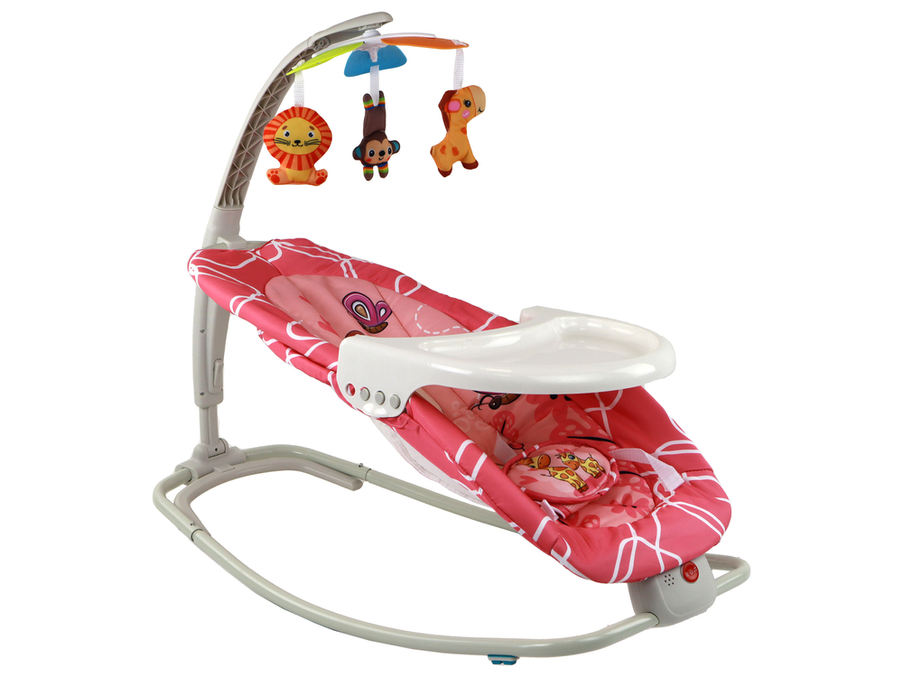 Pro bezpečnost miminka je lehátko vybaveno pohodlnými bílými popruhy. Houpačka je napájena bateriemi (2 x 1,5 V, nejsou součástí dodávky) a nabízí různé možnosti zábavy, jako jsou písničky a vibrace, které vašemu miminku pomohou uvolnit se a usnout. Lehátko lze také rozložením bílé nohy a rozložením stolu proměnit ve stabilní křeslo.