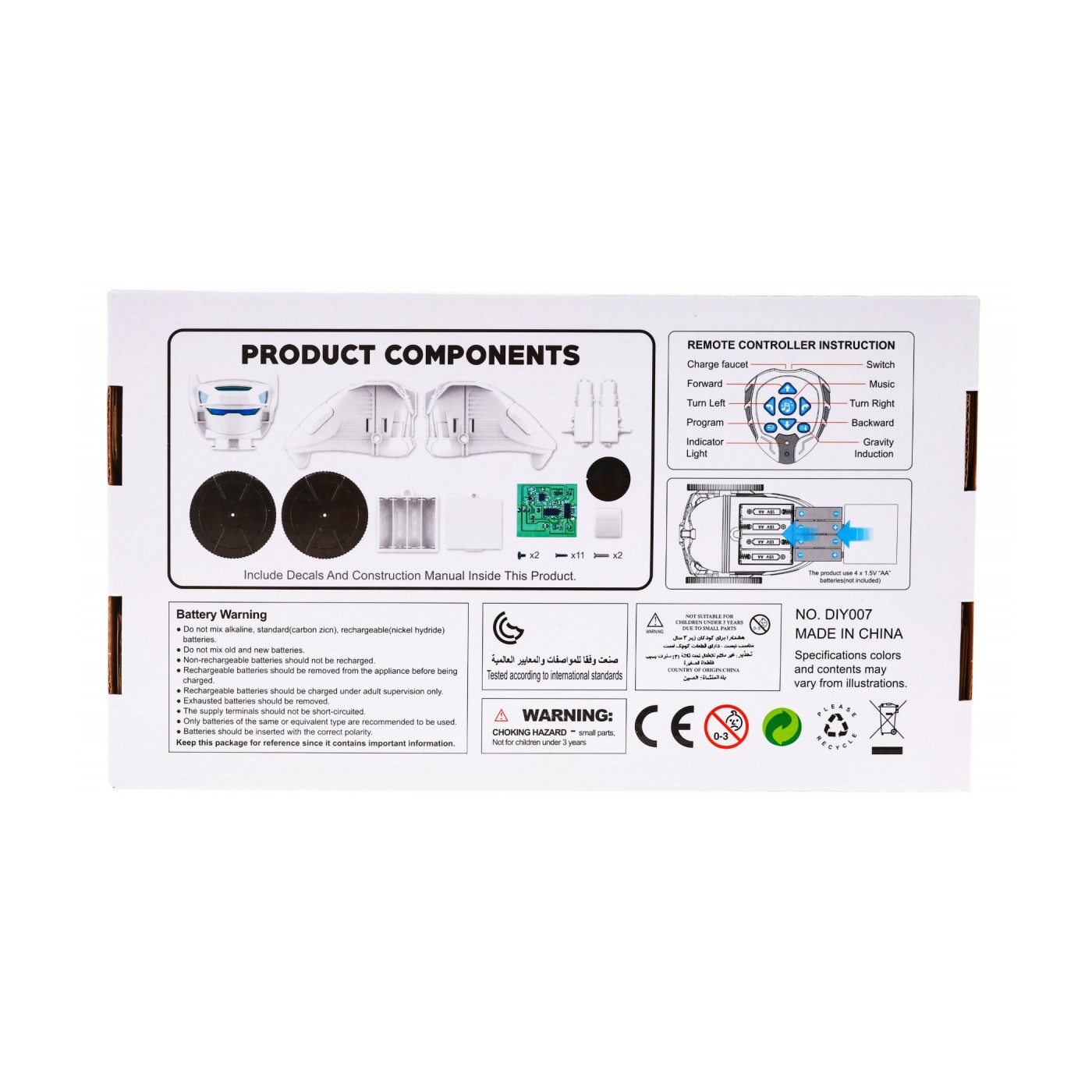 Robot je napájen čtyřmi AA bateriemi, které nejsou součástí balení.