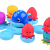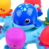 Součástí setu je modrá paluba, růžová velryba vyrobená z plastu a 6 pestrobarevných chobotnic z pryže. Tato hračka je ideální pro zábavu při večerních koupelích nebo k použití v bazénu či jiném vodním prostředí.